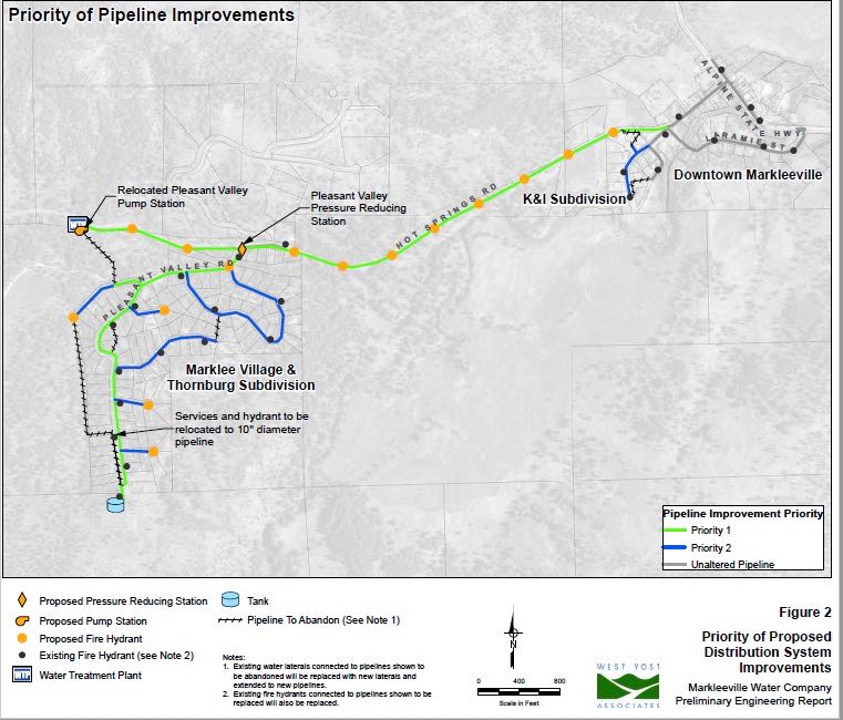—New Pressure Reducing Station. A new pressure reducing station would facilitate a reconfiguration of the existing MWC distribution system, allowing the downtown Markleeville area to be fed by water stored in the Pleasant Valley Tank. This change would increase turnover of the tank, thereby reducing water age and improving water quality in parts of the distribution system. Additionally, this change, when coupled with pipeline replacements, will dramatically improve flows to hydrants in the downtown area during a fire event.